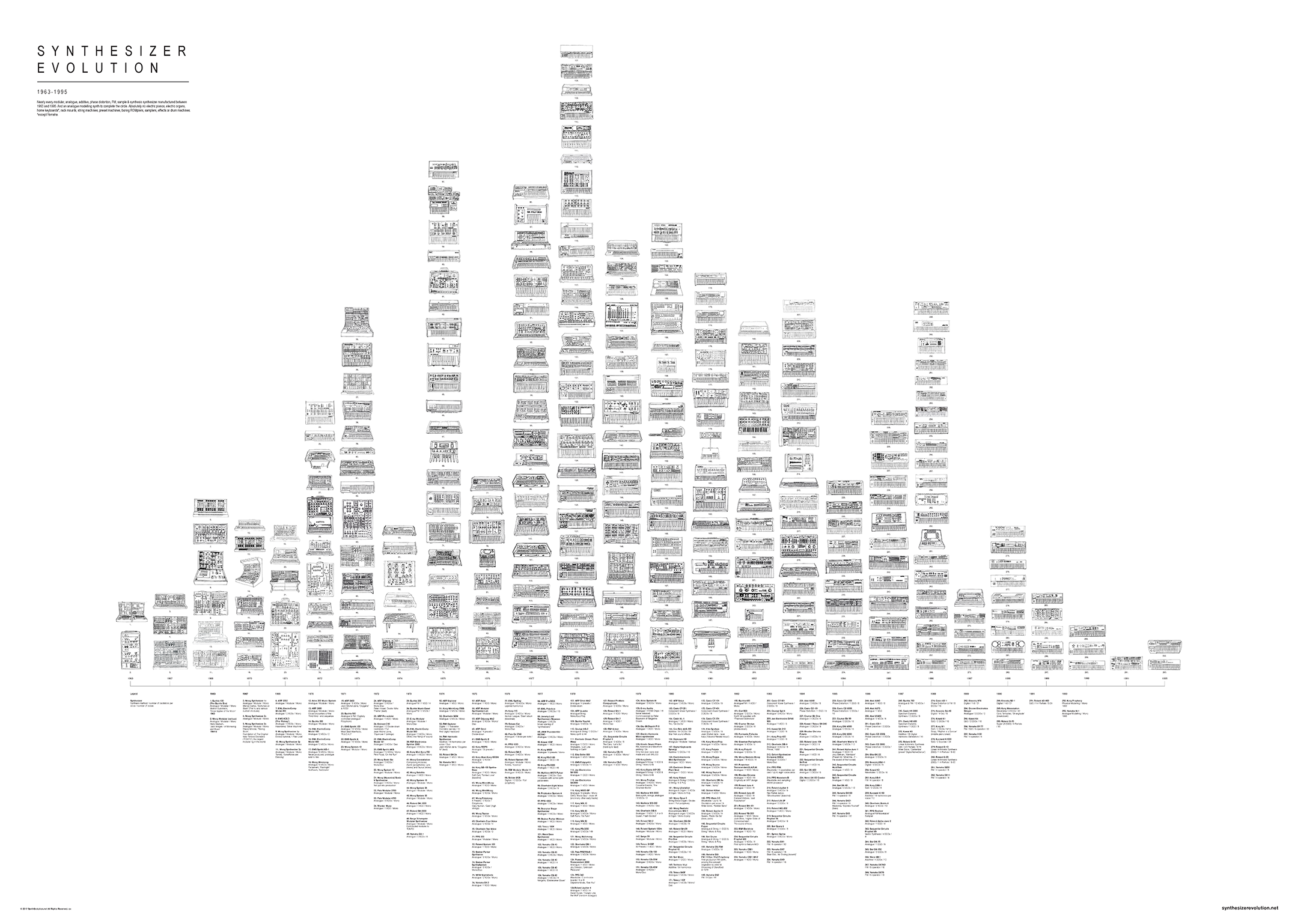 The original book - a directory of every vintage synth of the 20th century. Each entry is hand-illustrated and accompanied by the key facts and figures of each synth.